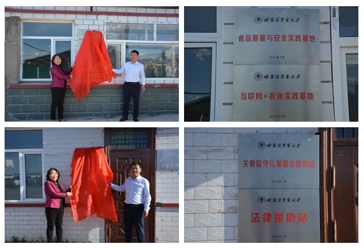 郑秋鹛校长、李传柱副书记为实践基地、服务站揭牌