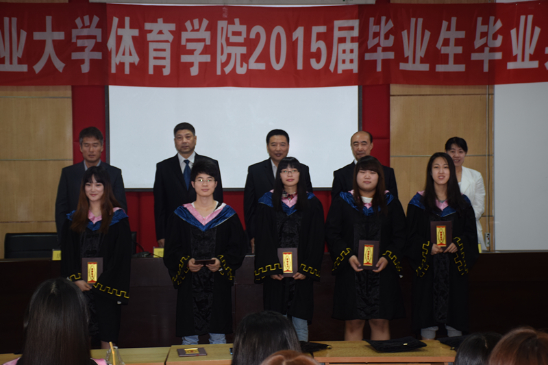 典礼在庄严的国歌声中拉开序幕,首先副院长贾振佳宣读了2015届毕业生获得学士学位名单和考上研究生学生名单,副院长唐宝盛宣读了获得2015届优秀毕业生学生名单,学院领导向优秀毕业生代表颁发了证书。随后11级毕业生代表傅诗云同学和12级在校生代表李华忠同学先后发言。毕业生表达了他们对于师弟师妹的真挚祝愿,在校生表达了对学姐学长们的依依不舍和感激之情。教师代表体育经济教研室主任刘巍老师发言情真意切,深深的表达了各位老师对毕业生们的不舍和期望。