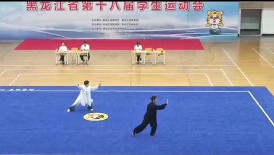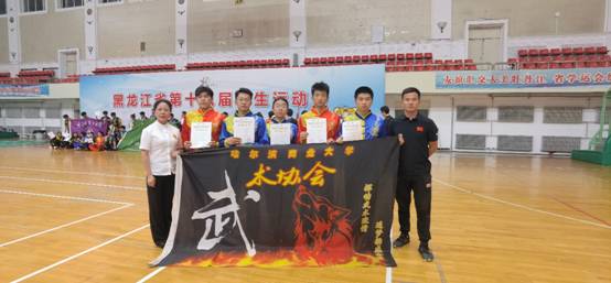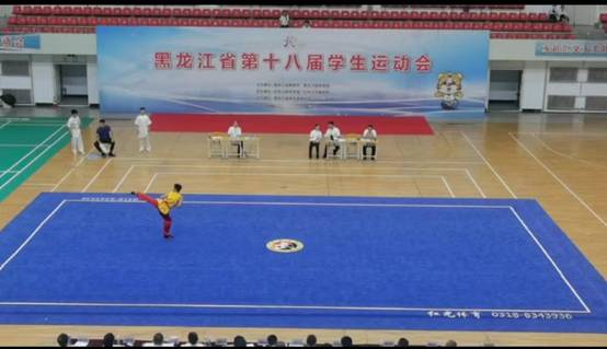 2022年8月19日上午9时许,黑龙江省第十八届学生运动会——大学生武术比赛,在牡丹江师范学院正式拉开帷幕,共有来自黑龙江省20所高等院校的210人参加比赛。这是我校武术队第一次参加四年一届的学生运动会,在我院教师张继春、丁宝震两位教练员的带领下,全体运动员在赛场上全力以赴。因疫情原因,只有5名同学参加了比赛,只经过短短一周的集训同学们就奔赴比赛现场。经过三天的激烈角逐,在竞争激烈的武术甲组项目比赛中,我校武术代表队全体同学奋勇拼搏、披荆斩棘,第一次参加比赛就获得了较好的成绩。能源与建筑工程学院2021级能源与动力工程专业—王文博荣获软器械(九节鞭)第六名;金融学院2020级投资学专业—杜泓达荣获太极拳第八名;会计学院2021级工商管理专业—李妙凡荣获单器械(太极剑)第八名;王文博、杜泓达、李妙凡、康佳轩、张婧5名运动员荣获集体项目功夫扇第八名;康佳轩同学荣获“优秀运动员”称号,张继春老师、丁宝震老师荣获“优秀教练员”称号。