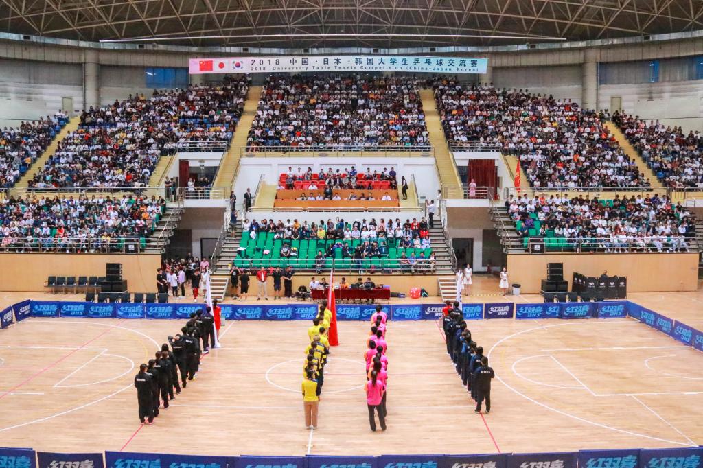 2018中日韩大学生乒乓球交流赛在我校开幕