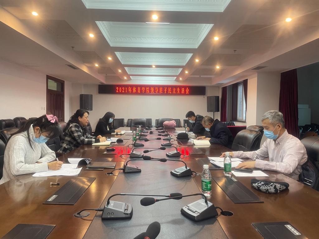 体育学院党总支于2022年1月15日下午15:00在学校行政楼5楼会议室召开了领导班子党员领导干部党史学习教育专题民主生活会。参加本次会议的领导有副校长李晓梅、校办副主任毕军、体育学院党总支书记武广滨,党总支副书记、院长唐宝盛、党总支副书记王洋和学校廉政纪检监察员唐佳梁,会议由武广滨同志主持。